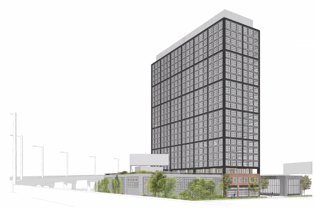 There will also be a large public space at the corner of 2nd and Callowhill where an elevated section of the highway runs over the property. This area will be landscaped and hardscaped. Two commercial spaces will border the space on its west side.