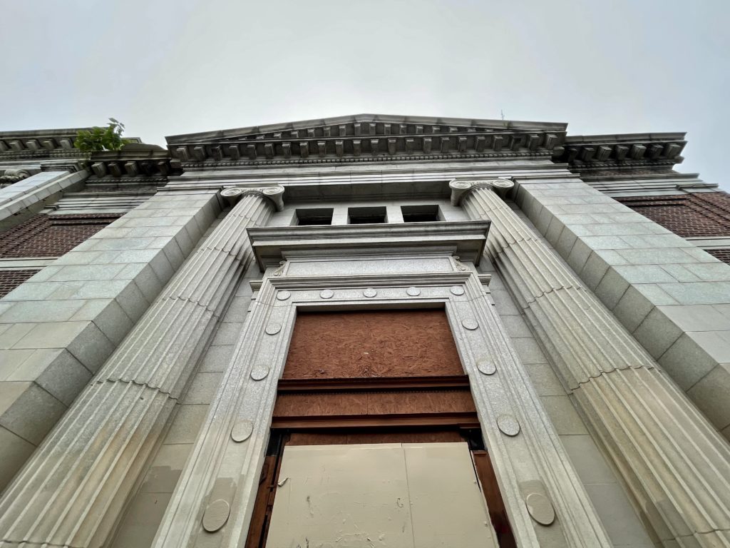 If you follow Philadelphia real estate development, you likely know that these buildings have had several development proposals and demolition threats over the last 10-15 years or so. The structures have been sitting vacant for several decades and until recently, had no roofs. The elements have definitely taken their toll on the banks, which have been nearly completely stripped of all of their interior beauty. It is our hope that the structures are deemed safe and the redevelopment of these architectural treasures can proceed. If the development team can pull this project off as planned, they will be lauded and will breathe life into a corner that has been blighted for 40 years.