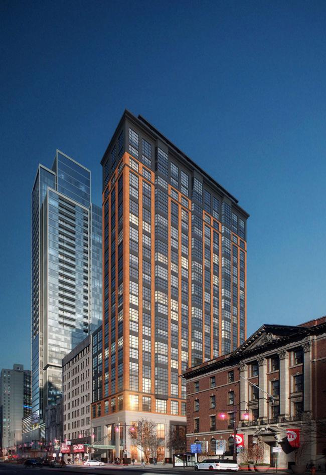 Watts Street to the east of the property will be widened during construction. A loading dock and the underground parking entrance will be located along Watts Street.